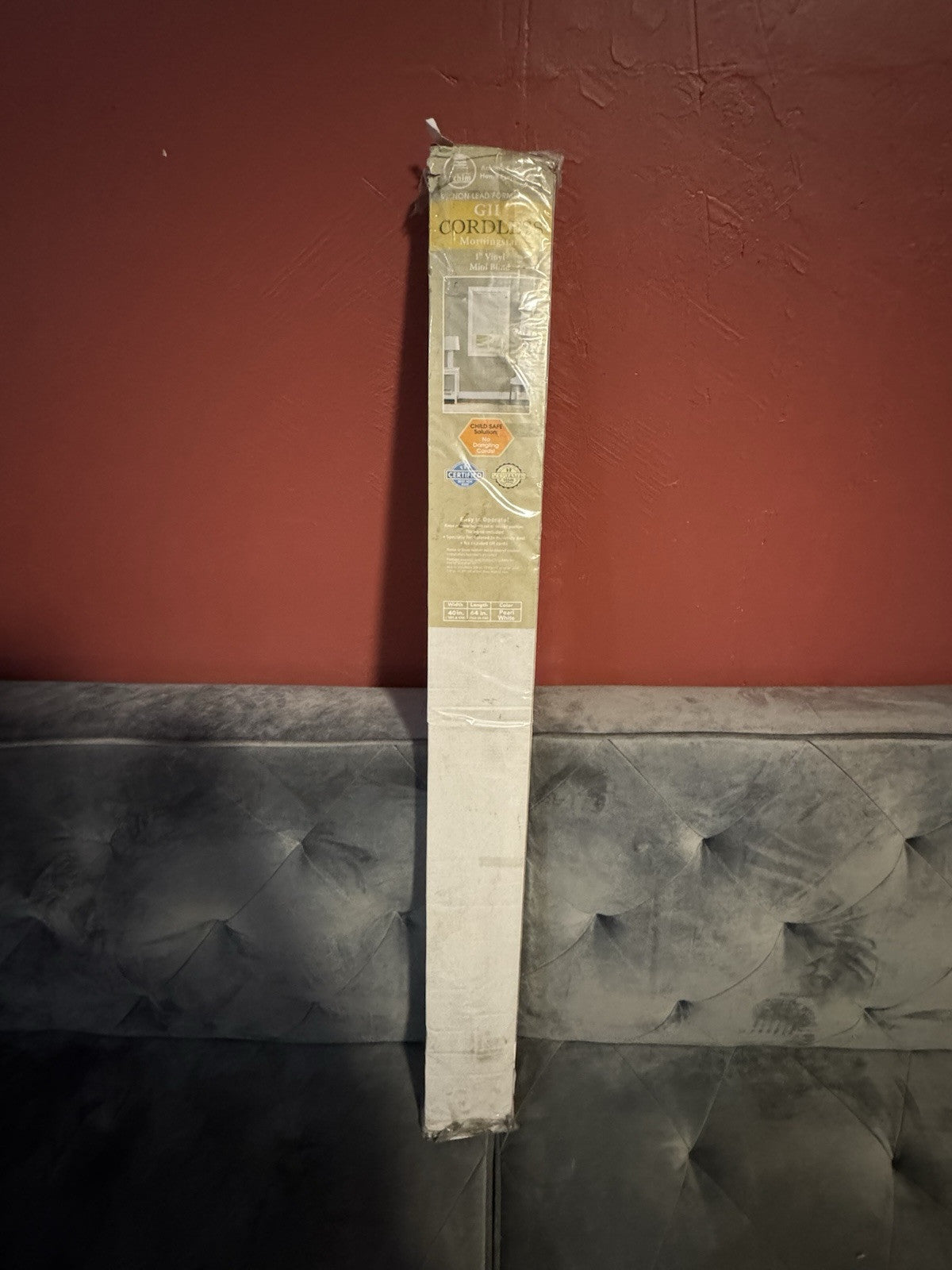 Achim Morningstar Black Cordless Vinyl Mini Blind, 33" W x 48" L. Condition is New. Shipped with USPS Ground Advantage.