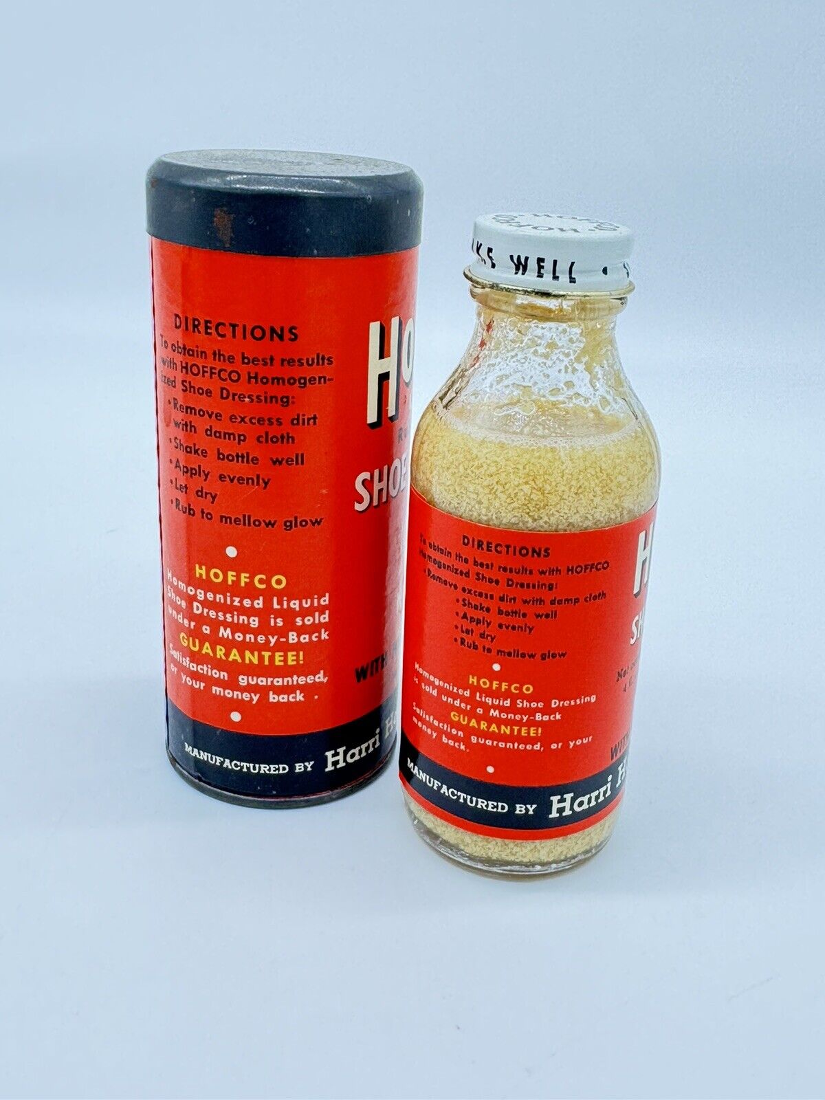 Antique Hoffco Shoe Dressing Vintage Cardboard Tin Liquid Shoe Dressing White