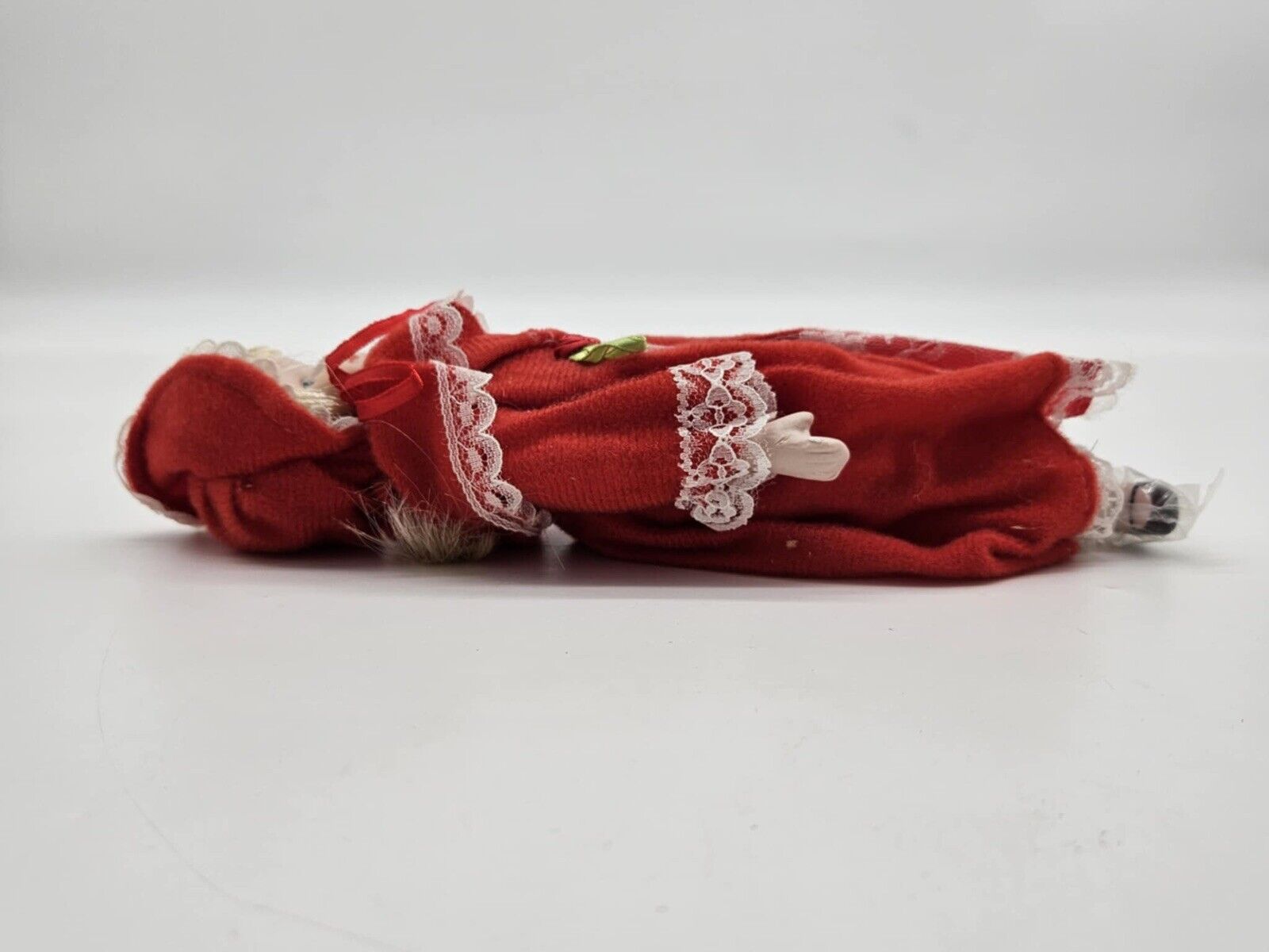 Bisque Porcelain 9" Doll Wearing Red Dress W/Shawl & Hat Black Painted On Shoes. Condition is Used. Shipped with USPS Ground Advantage.