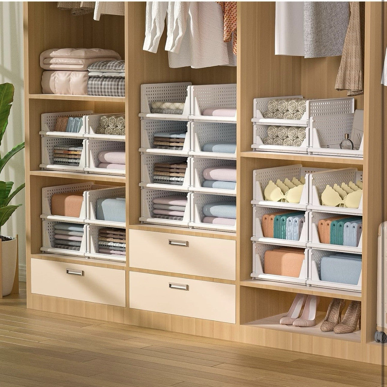 Clothes Organizers And Storage, 3 Pack Stackable Plastic Storage Bins, Foldable. Condition is New. Shipped with USPS Ground Advantage.