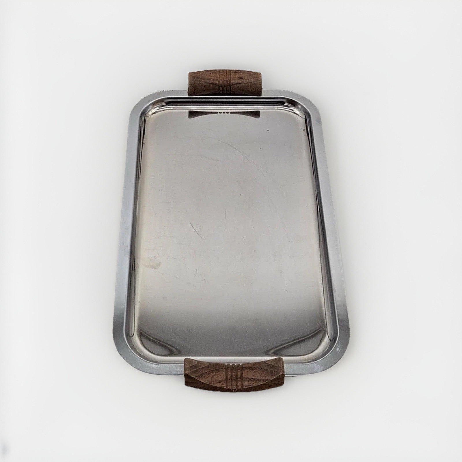 Club Aluminum Rectangular Stainless Bar Tray American Walnut Handles #104