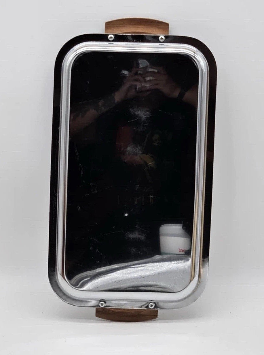 Club Aluminum Rectangular Stainless Bar Tray American Walnut Handles #104. Condition is New. Shipped with USPS Ground Advantage.