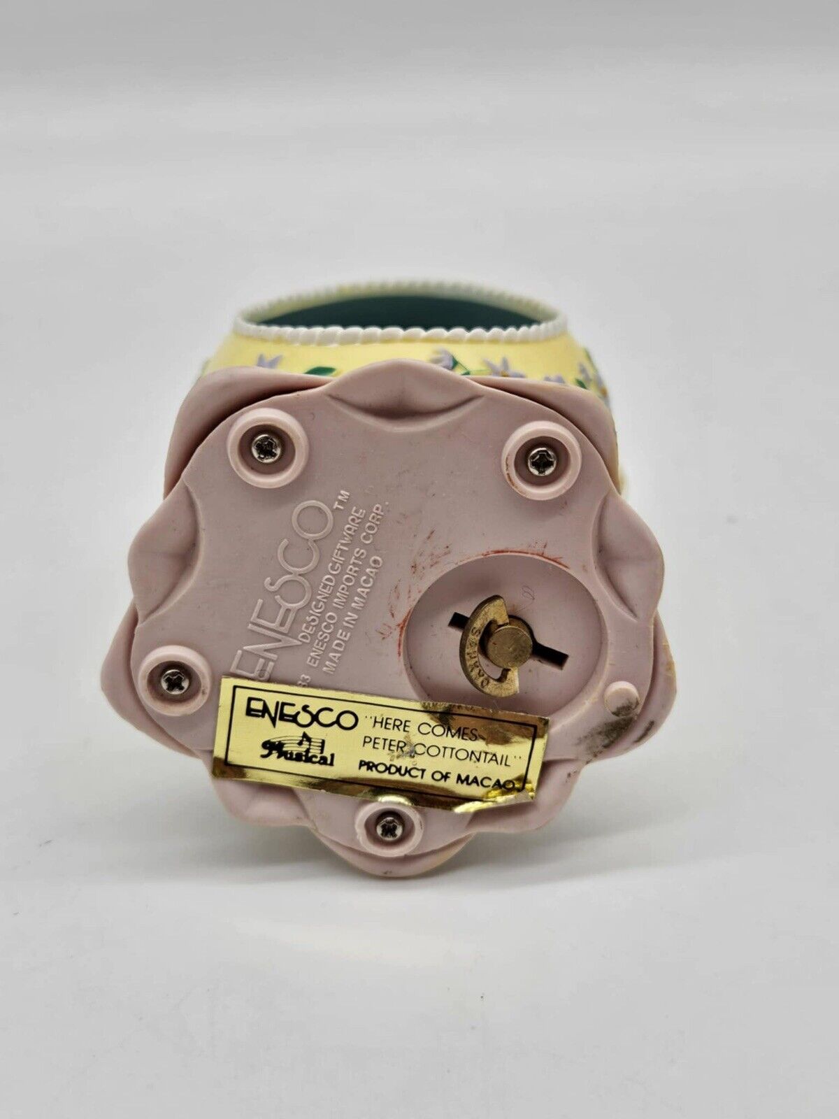 Enesco Rotating Musical Easter Egg Panoramic “Here Comes Peter Cottontail” WORKS. Condition is Used. Shipped with USPS Ground Advantage.