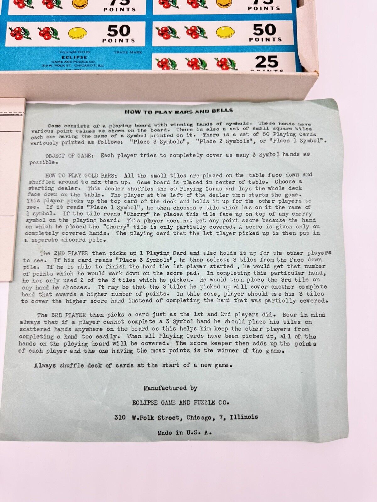 EXTREMELY RARE - 1950s Vintage Bars & Bells Game By Eclipse Game & Puzzle Co. Condition is Used. Shipped with USPS Ground Advantage.