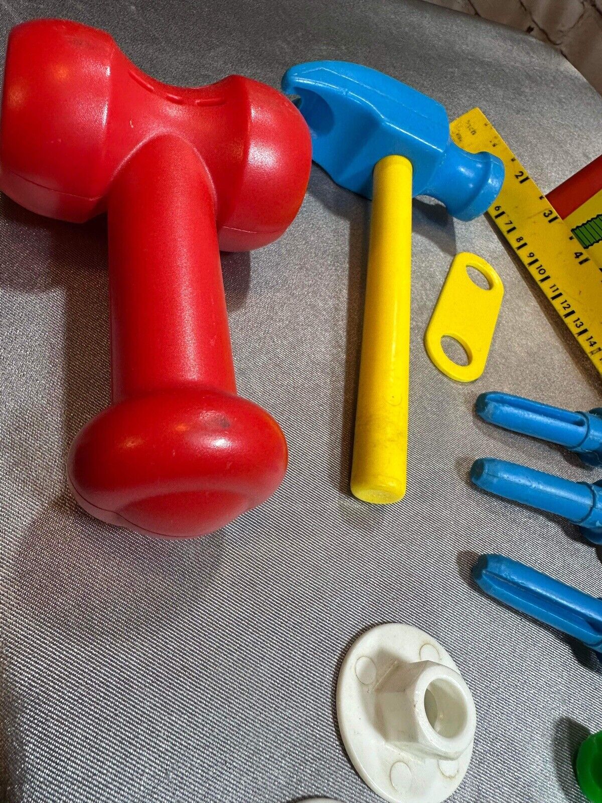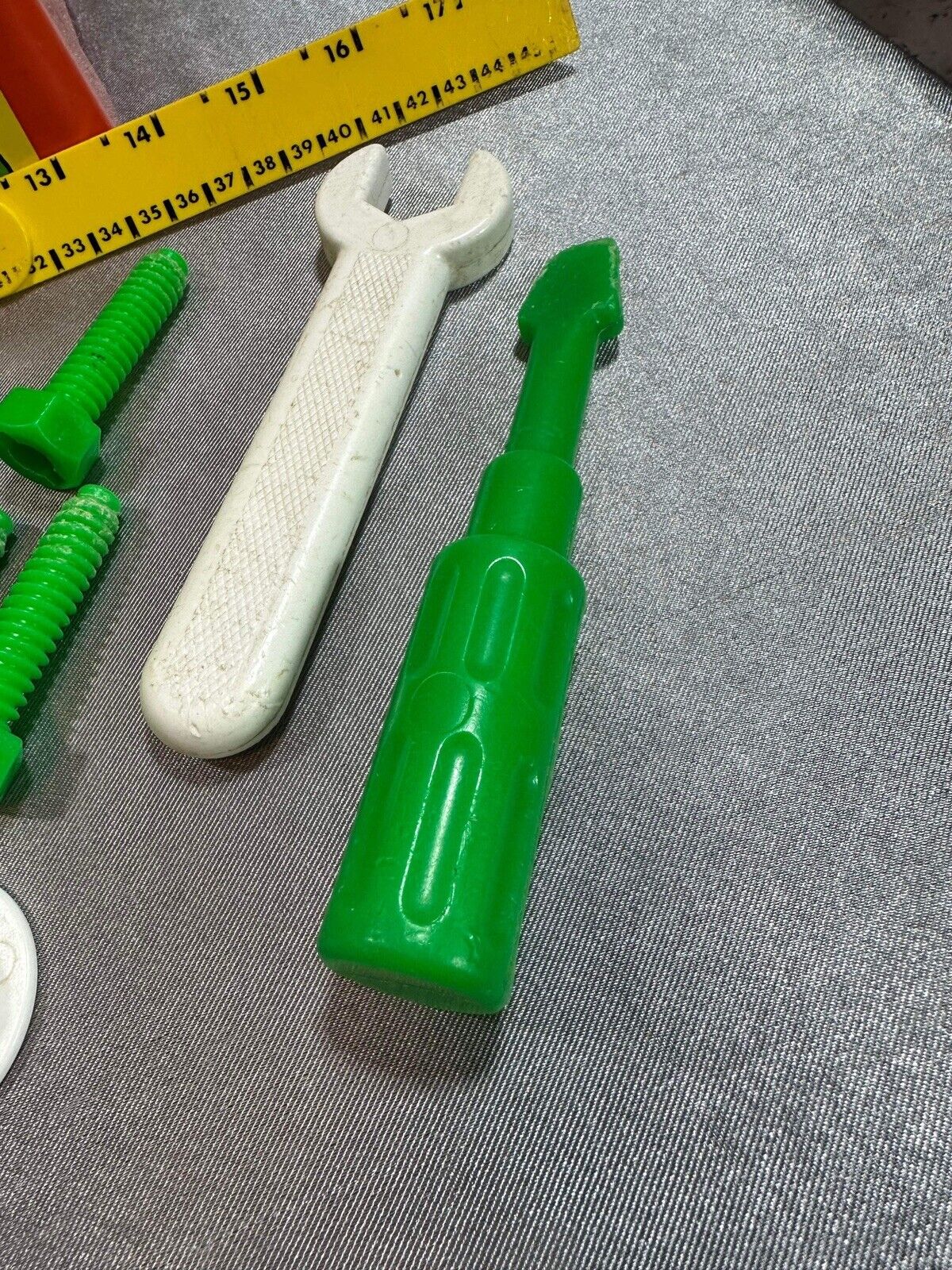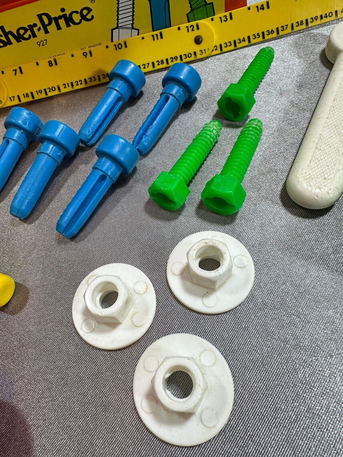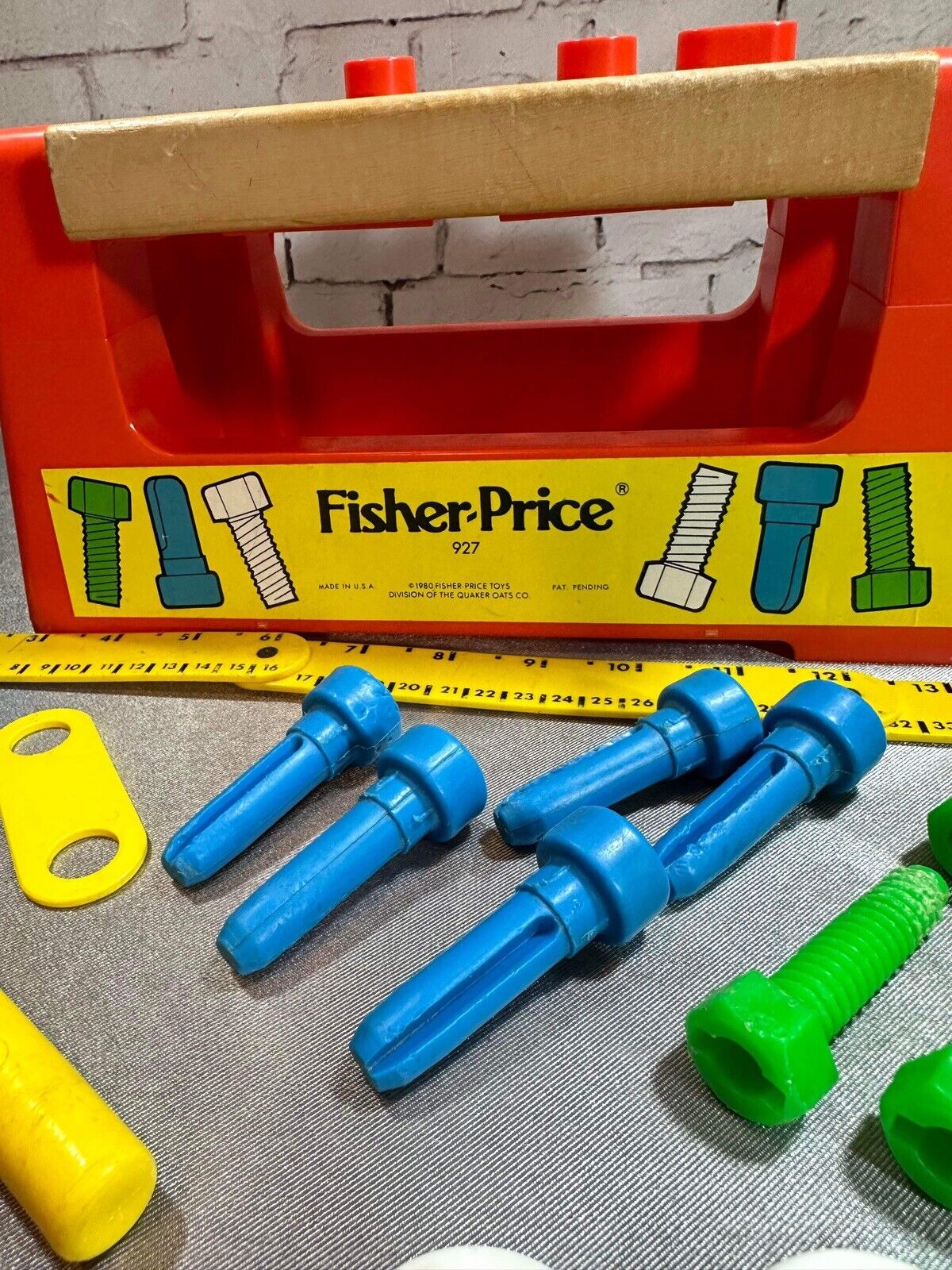 Fisher Price # 927 Wood Plastic Work Bench With Tools Ruler Hammer 1980 VTY FNF