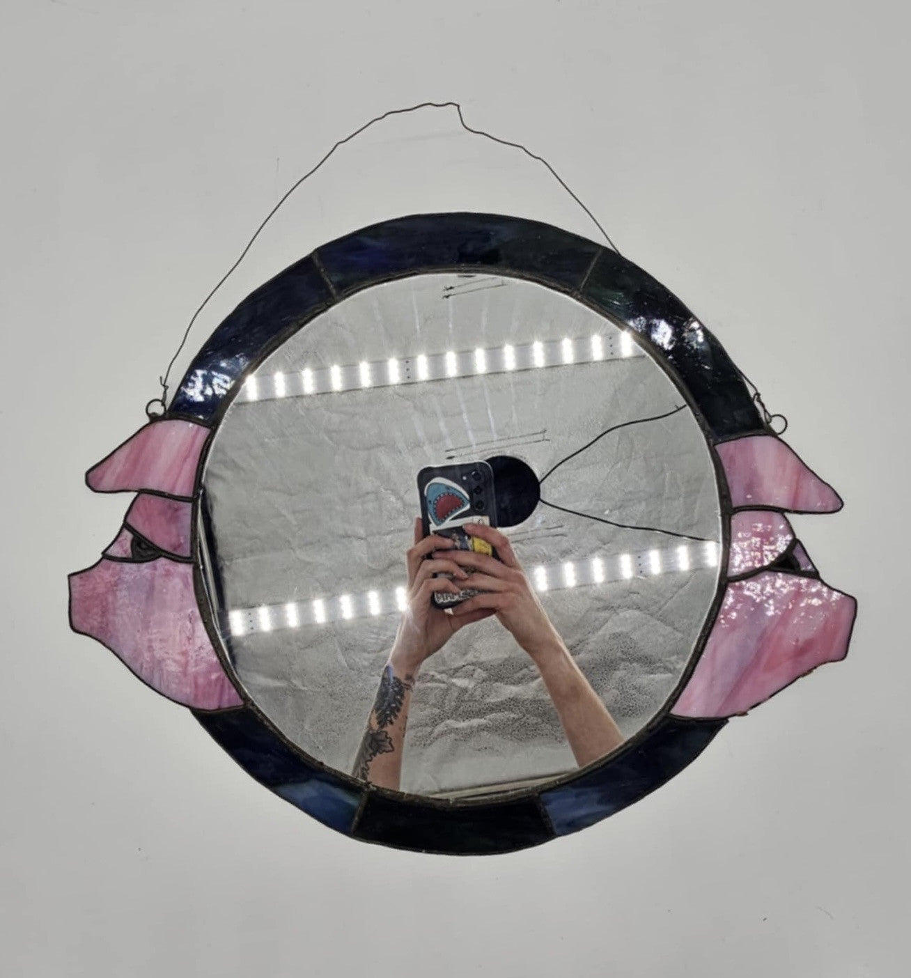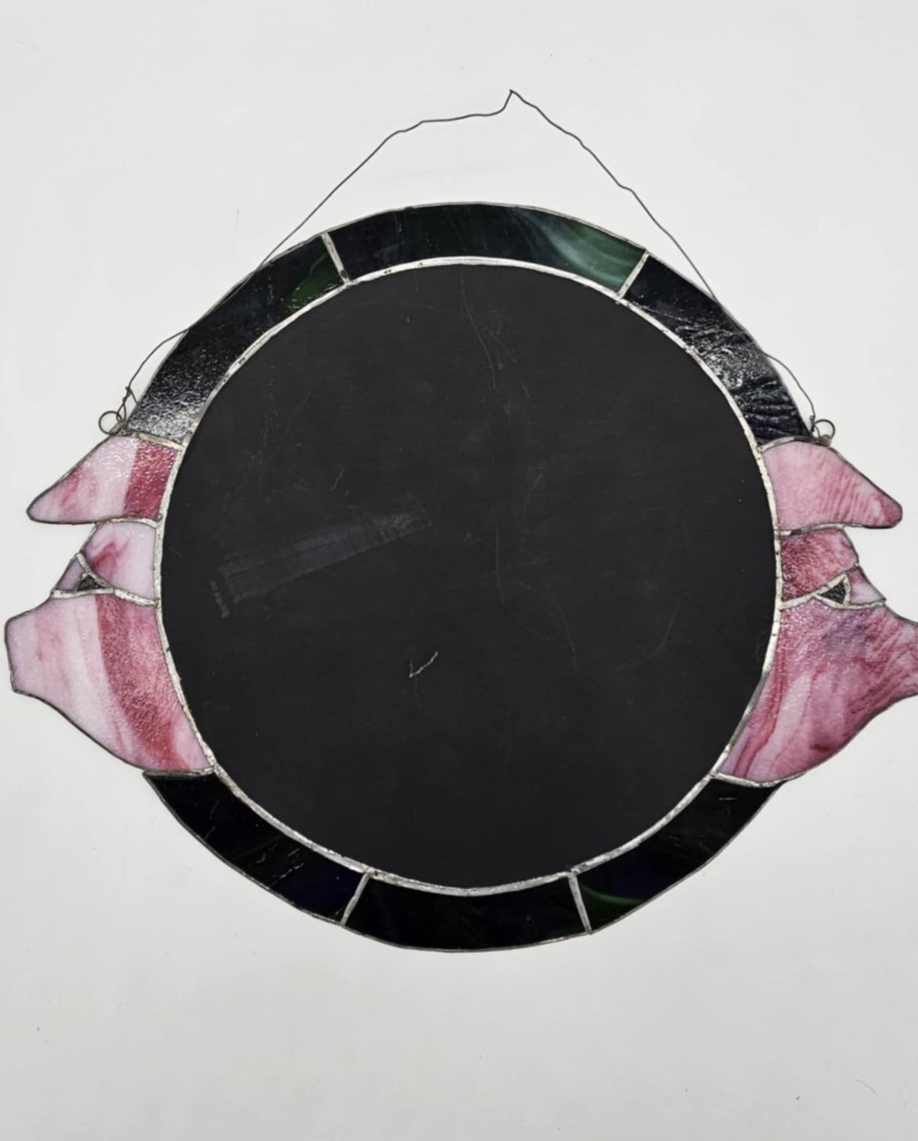 Gorgeous ORIGINAL Vintage Handmade STAINED GLASS Pigs? Flowers?