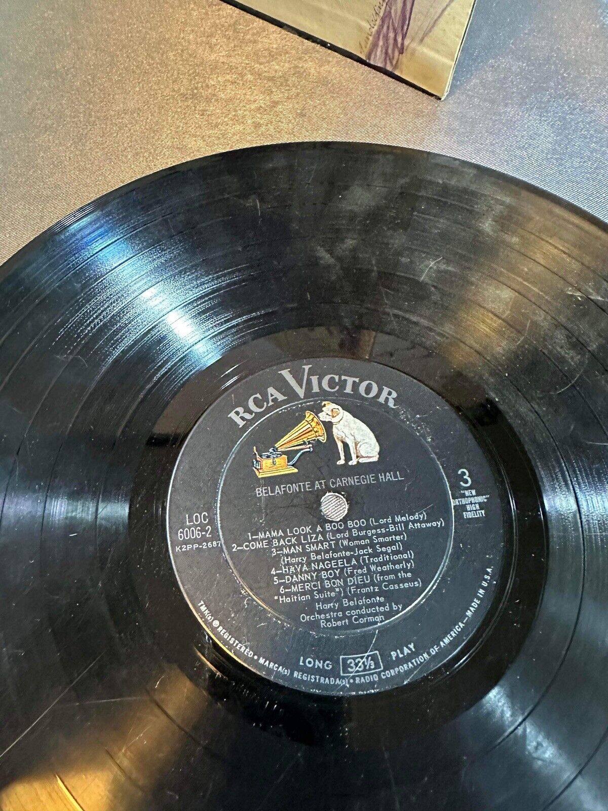Harry Belafonte At Carnegie Hall Vinyl 2 LP RCA LOC-6006 1st Pressing Day O Mono. Condition is Used. Shipped with USPS Media Mail.