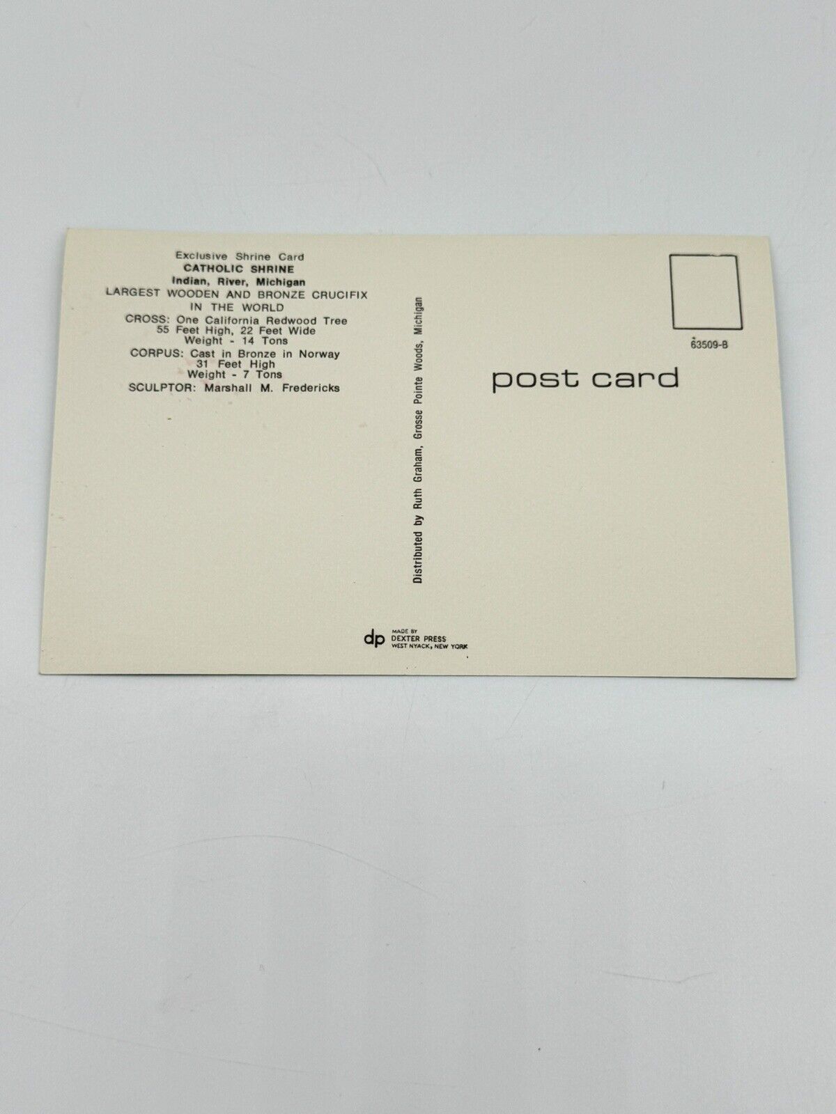 Largest Wooden & Bronze Crucifix In World Indian River MI Chrome Postcard Vtg. Condition is Used. Shipped with USPS Ground Advantage.