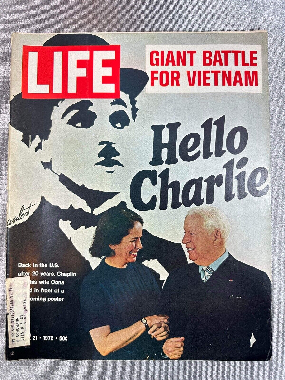 Life Magazine April 21 1972 Giant Battle For Vietnam Hello Charlie Chaplin. Condition is Good. Shipped with USPS Ground Advantage.