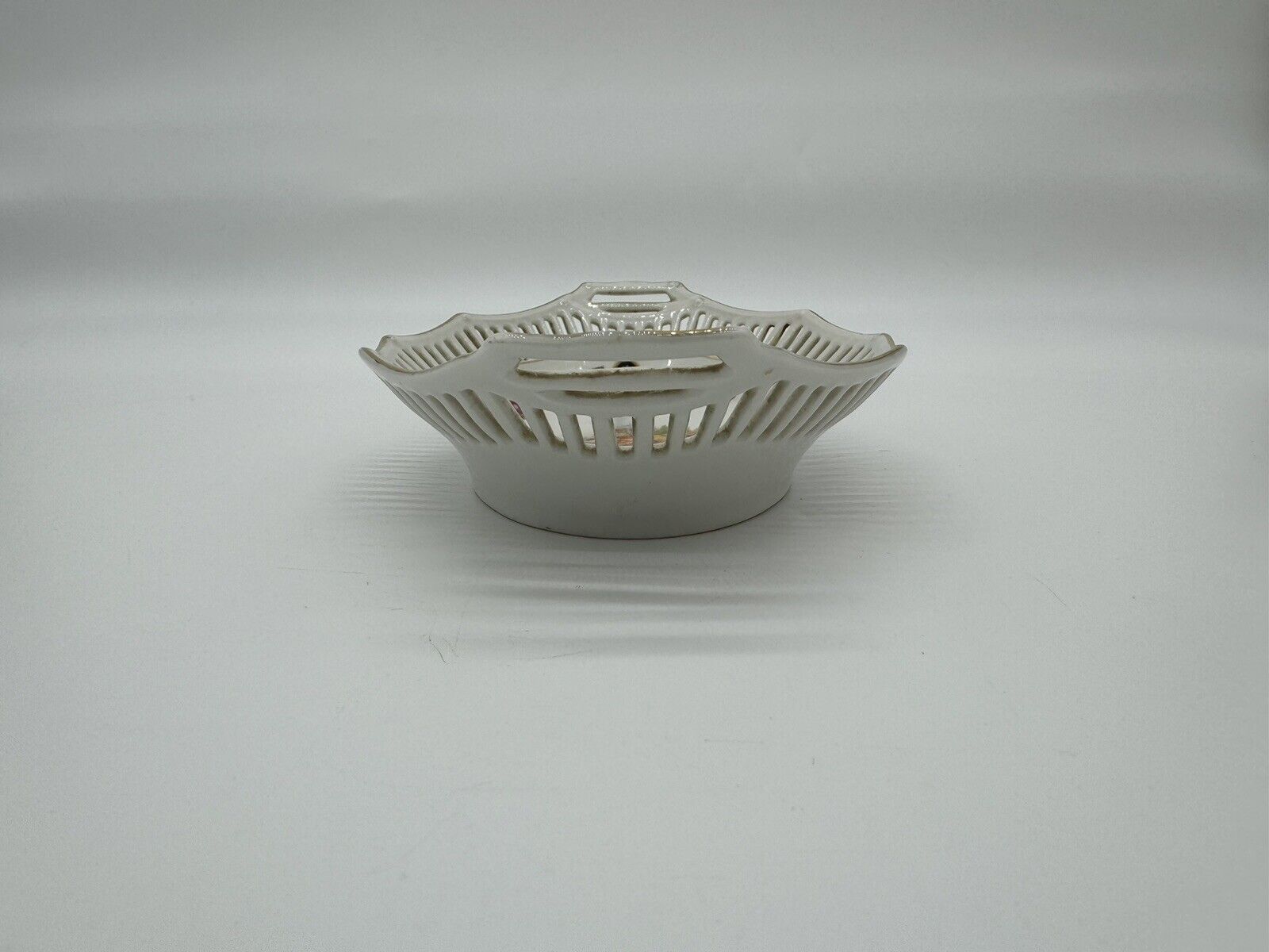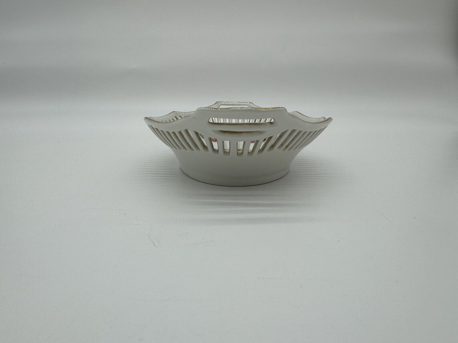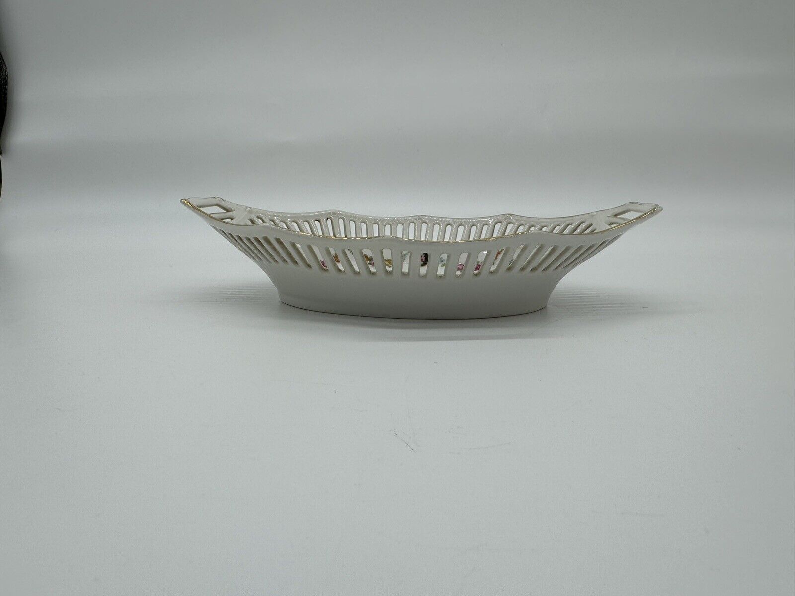 Reticulated German Porcelain Dish White With Gold Trim & Handles Stamped. Condition is Used. Shipped with USPS Ground Advantage.