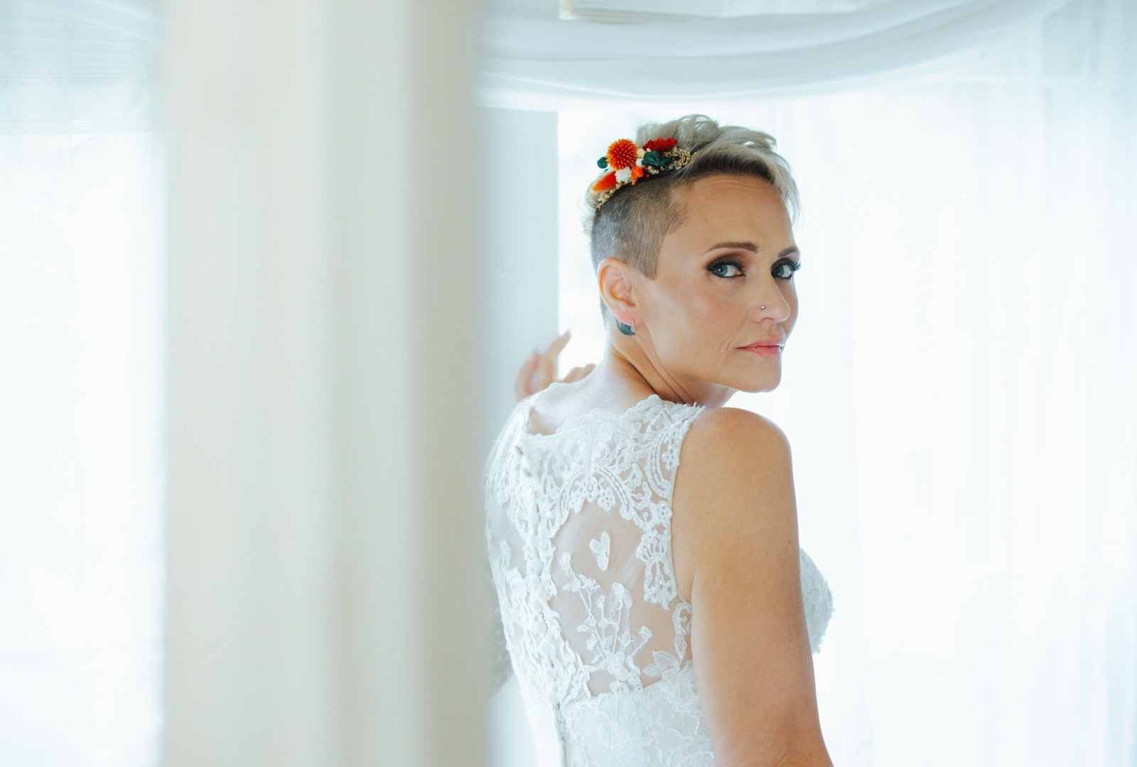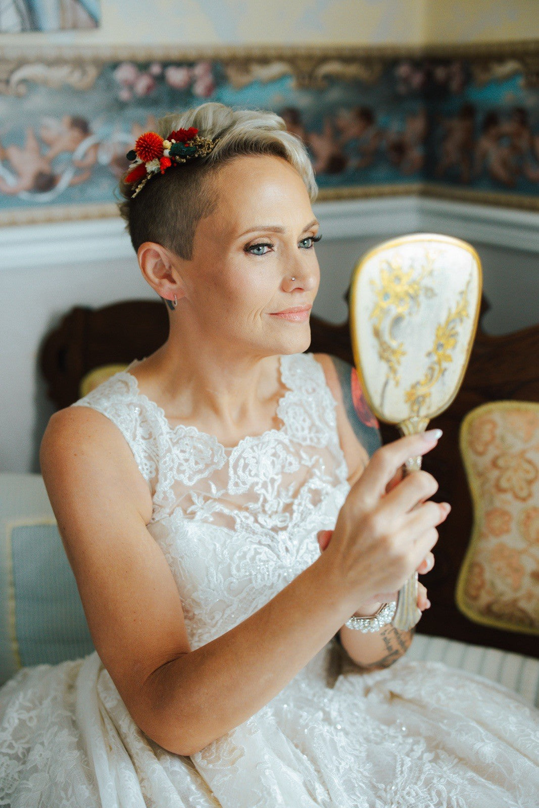 Worn once for my wedding and will need to be professionally dry cleaned. This gown fit perfectly with only the length altered — I’m 5’5” and about 135 lbs for reference. Originally purchased from David’s Bridal, this stunning Oleg Cassini ball gown features yards of opulently beaded and appliquéd tulle that create softly folded pleats in the grand skirt. Covered in over 5,000 beads and sequins and finished with scalloped lace trim around the hemline, it’s absolutely breathtaking in person.