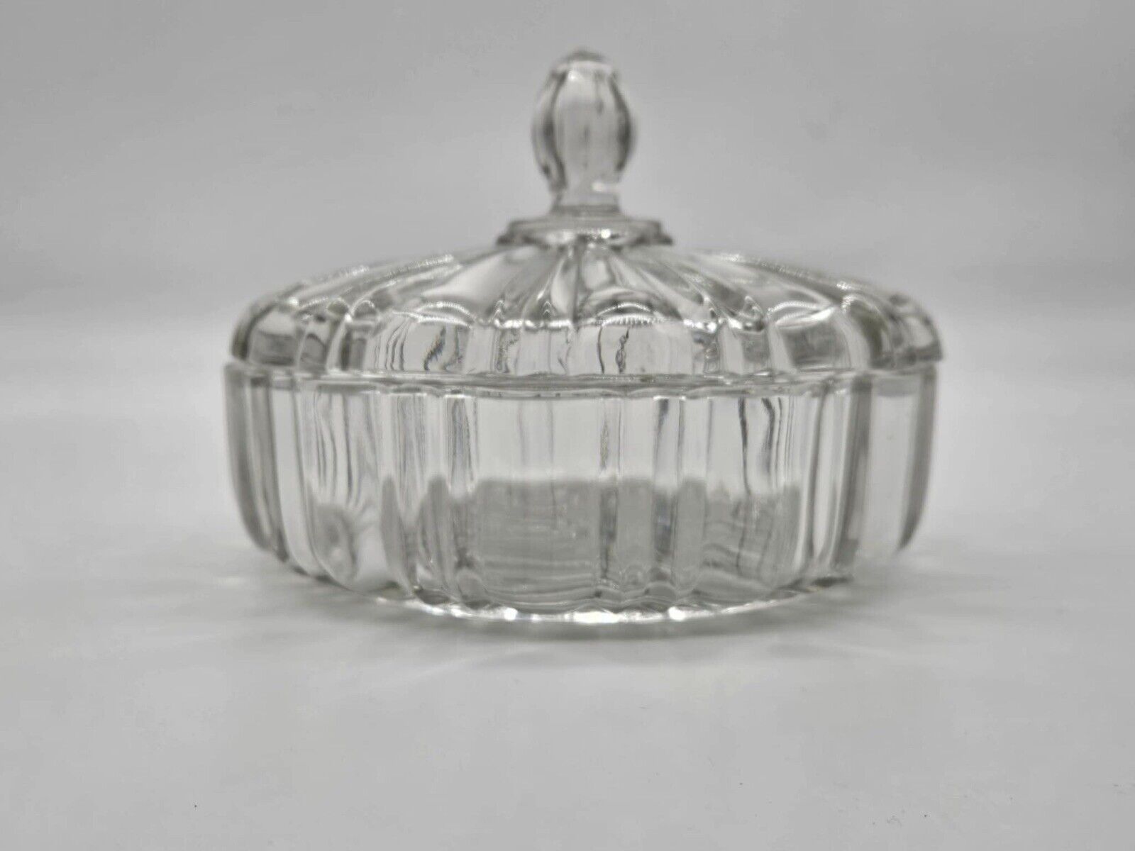 Vintage Anchor Hocking Clear Glass Spider Web Old Cafe Lidded Candy Nut Dish