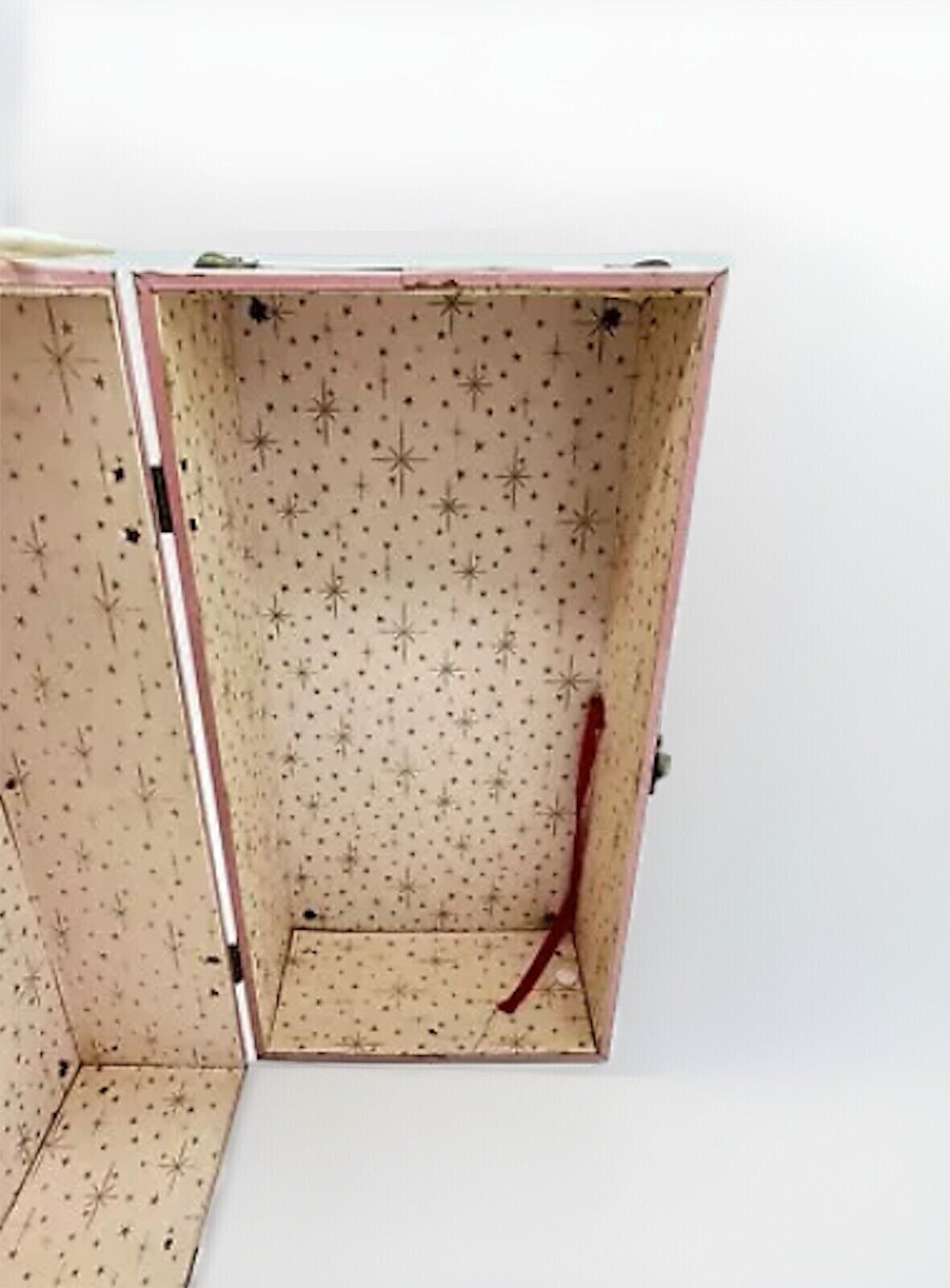 Vintage ATCO Pink Metal Large Doll Wardrobe Clothing Trunk Carrying Case 10”x 6"