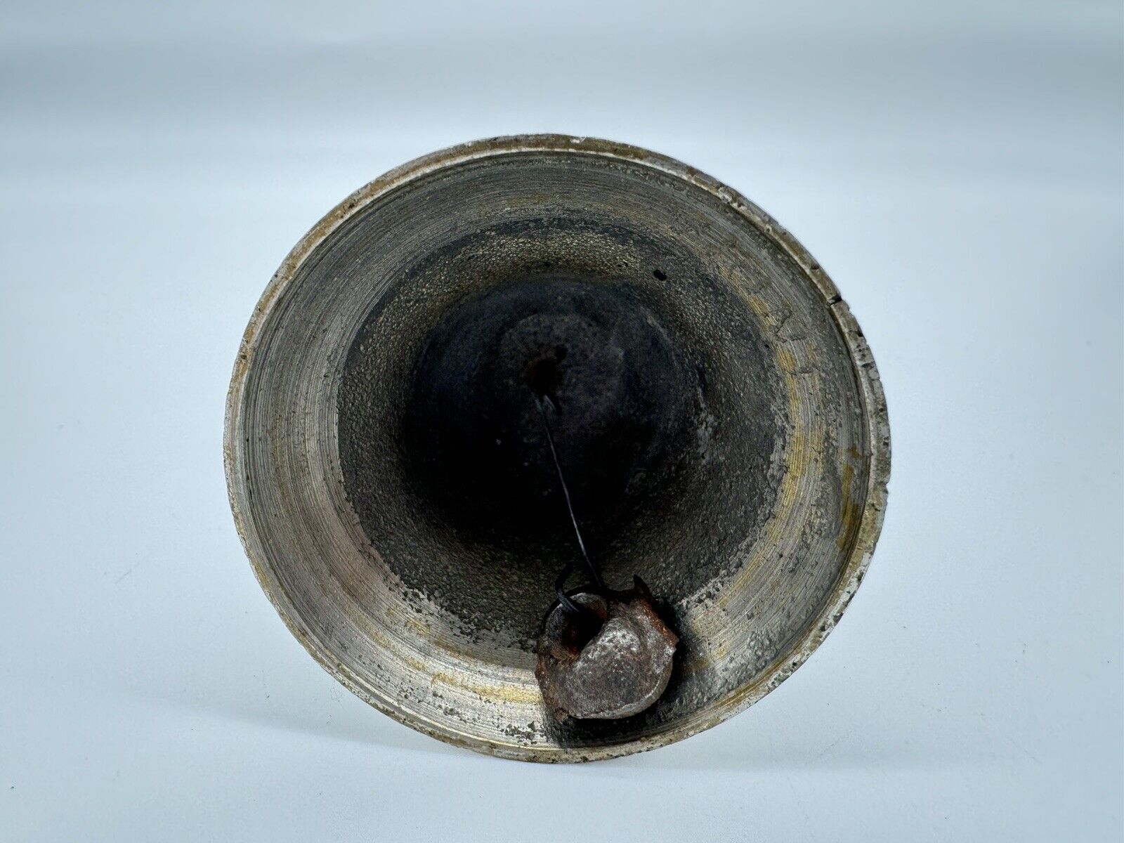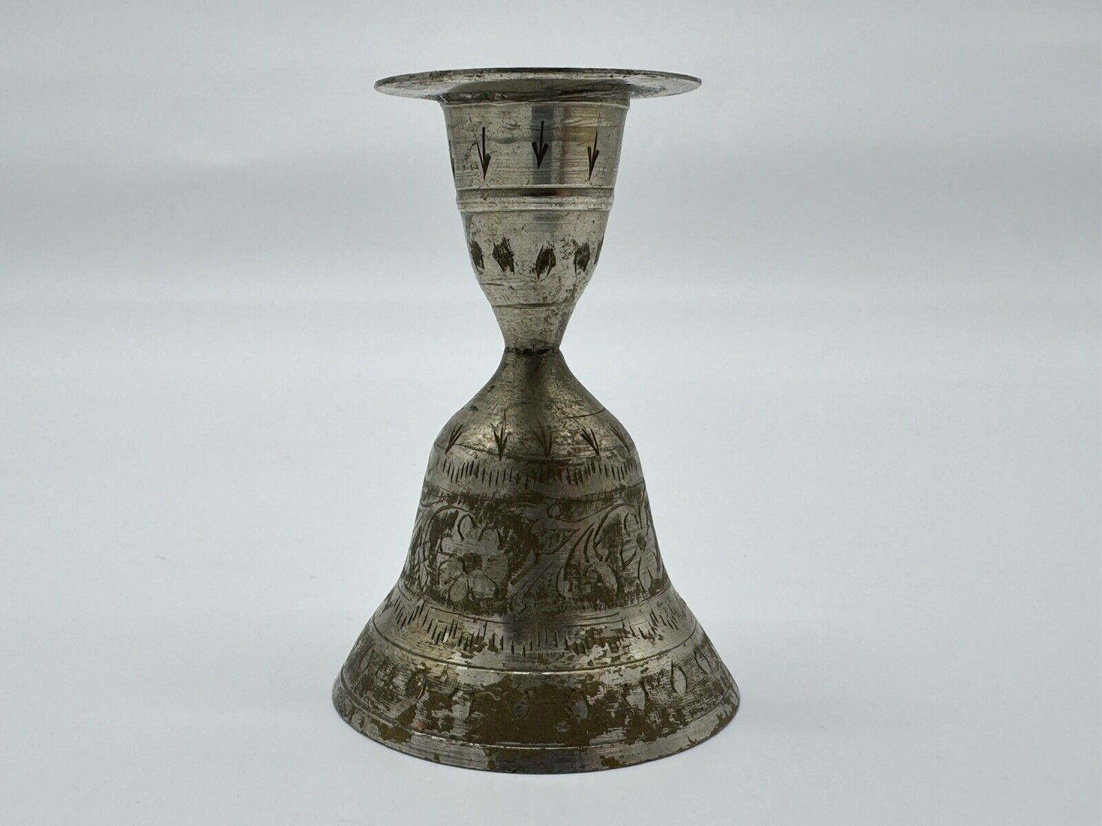 Vintage Candle Holder Bell Service Ringer Etched Metal Silver Patina 4" India