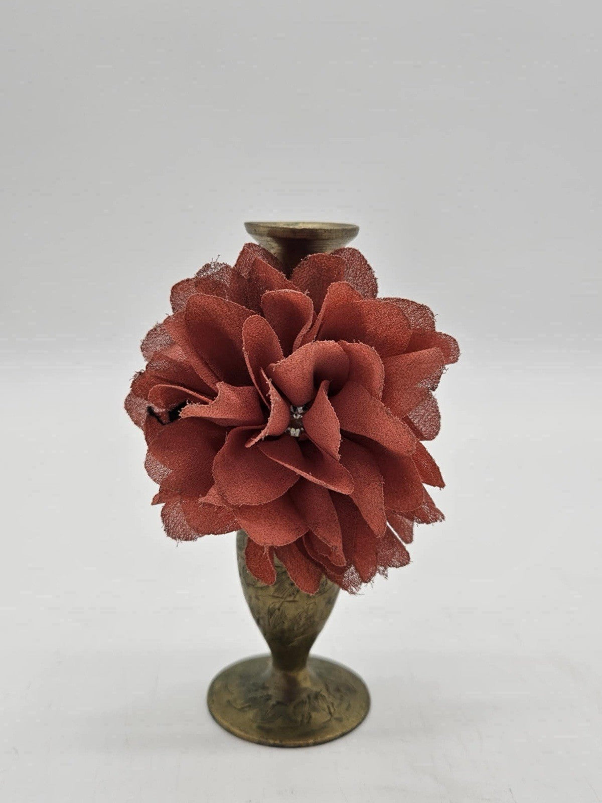 Vintage Indian Etched Brass Vase w/ Flower. Condition is Used. Shipped with USPS Ground Advantage.