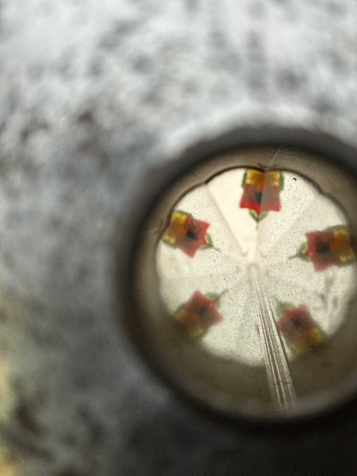 With its intricate details and vibrant colors, this Kaleidoscope is a great addition to any vintage toy collection. It measures 9 inches and is in excellent working order. This piece is perfect for display or play and will surely bring joy to anyone who sees it.