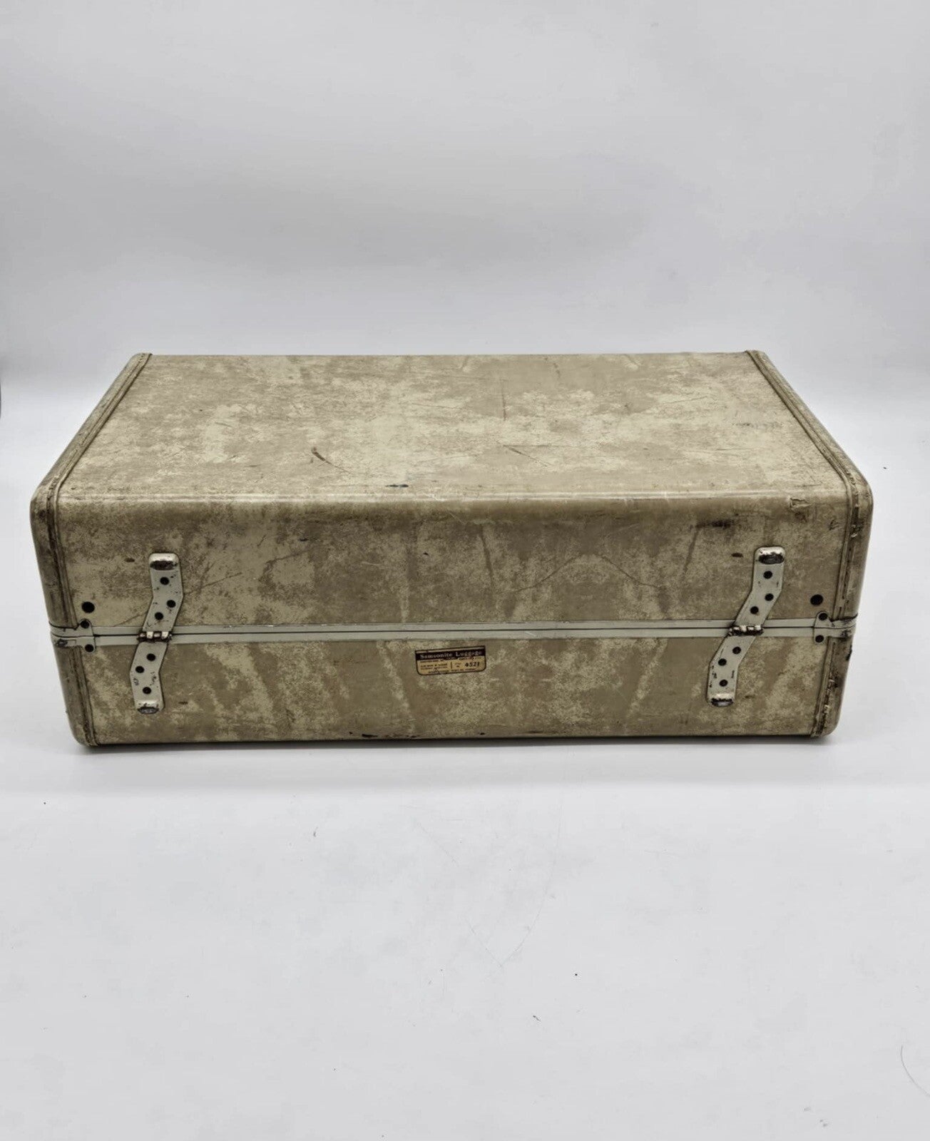 VINTAGE OFF WHITE SAMSONITE LUGGAGE TRAIN CASE TRAVEL BAG SUITCASE W/ SKULL KEY