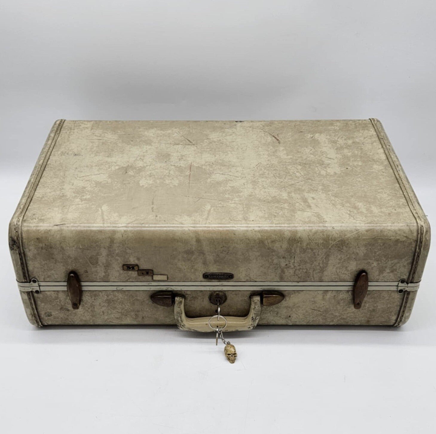 VINTAGE OFF WHITE SAMSONITE LUGGAGE TRAIN CASE TRAVEL BAG SUITCASE W/ SKULL KEY. Condition is Pre-owned. Shipped with USPS Priority Mail.