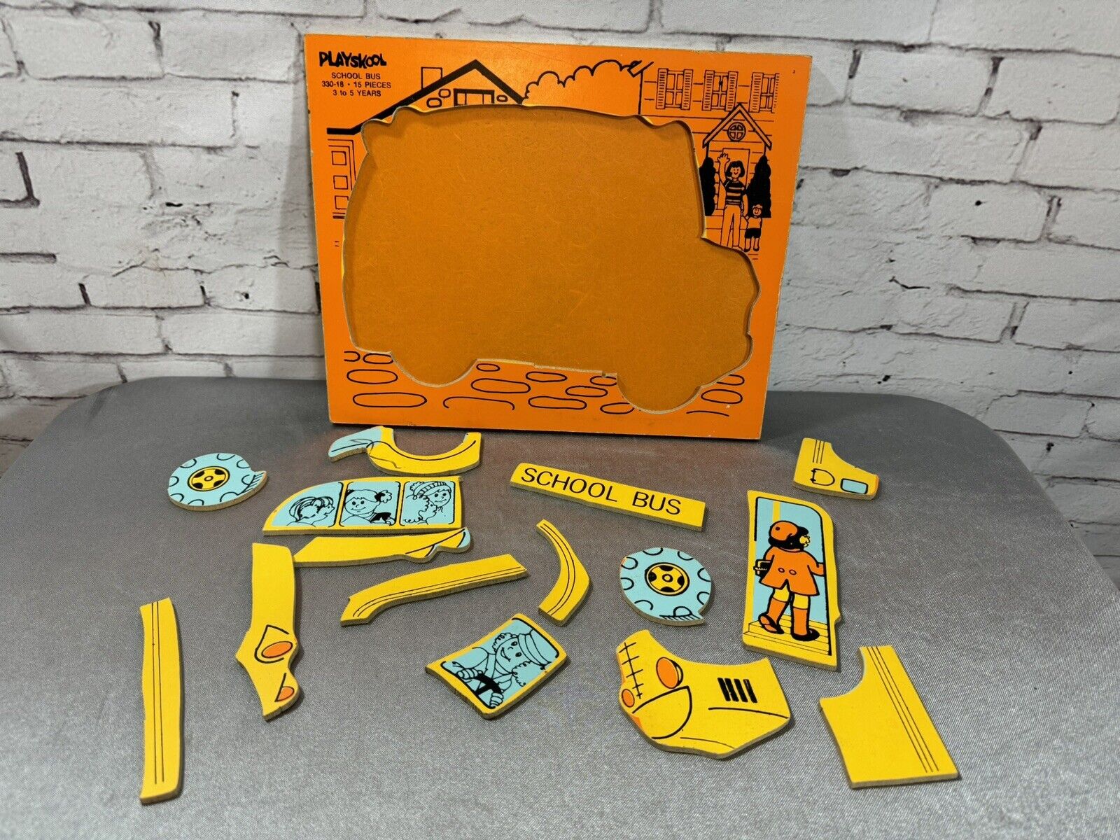 Vintage Puzzle Preschool Playskool School bus driver seatbelt wheel round town