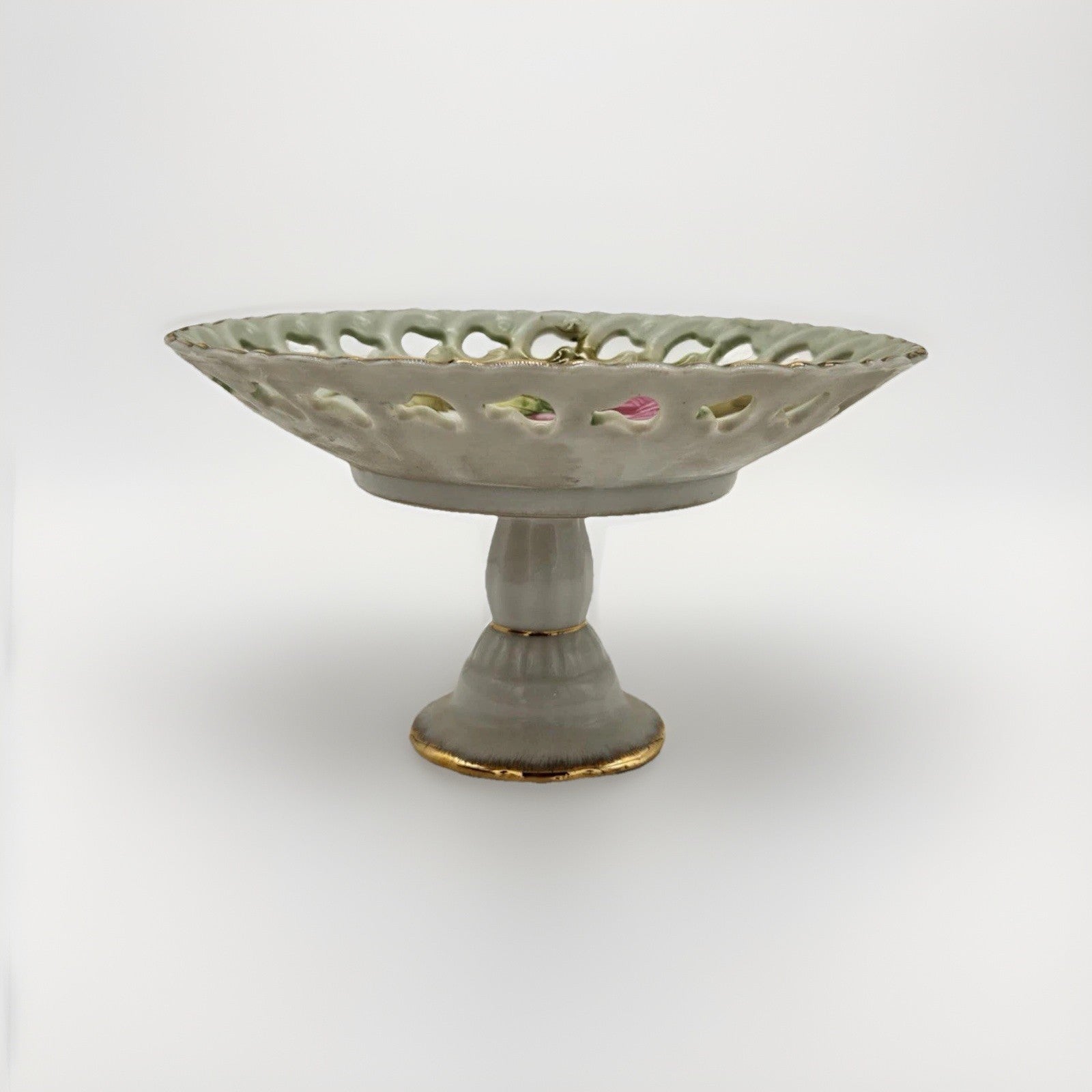 VTG Lefton Pink Roses Floral Chintz Footed Plate Pedestal Serving / Candy Dish